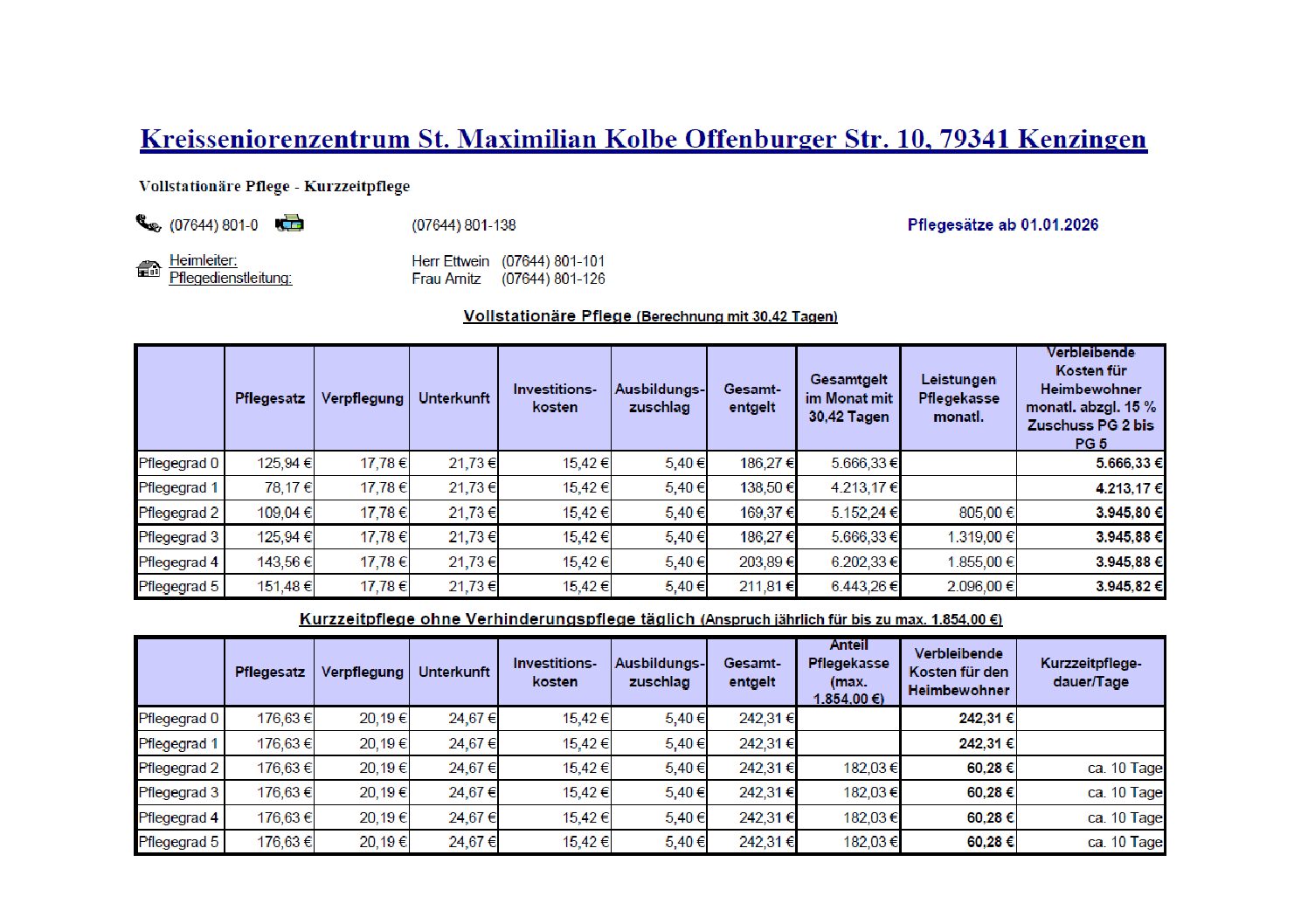 Pflegesätze & Preise